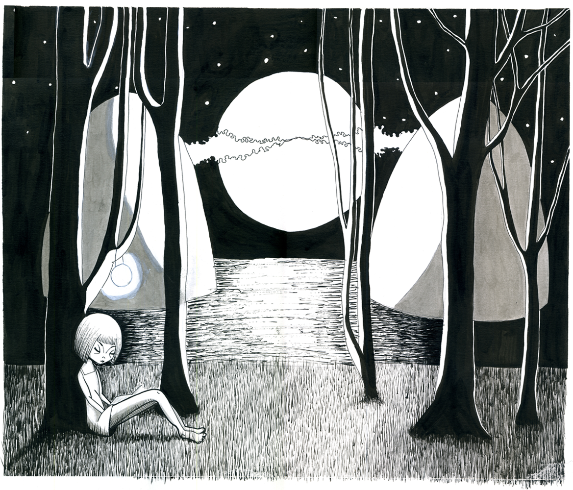 Final "Reading in the Forrest" under illustrations. Also, it's been pointed out to me, and it is pretty obvious that my love for Moomin is rubbing off on my work.